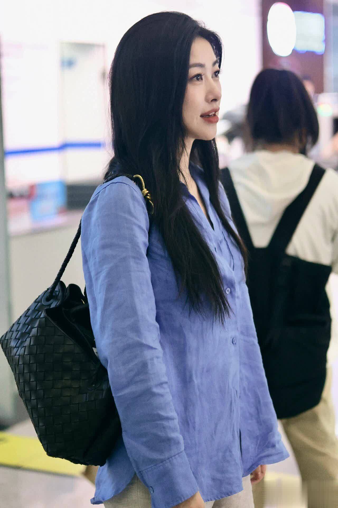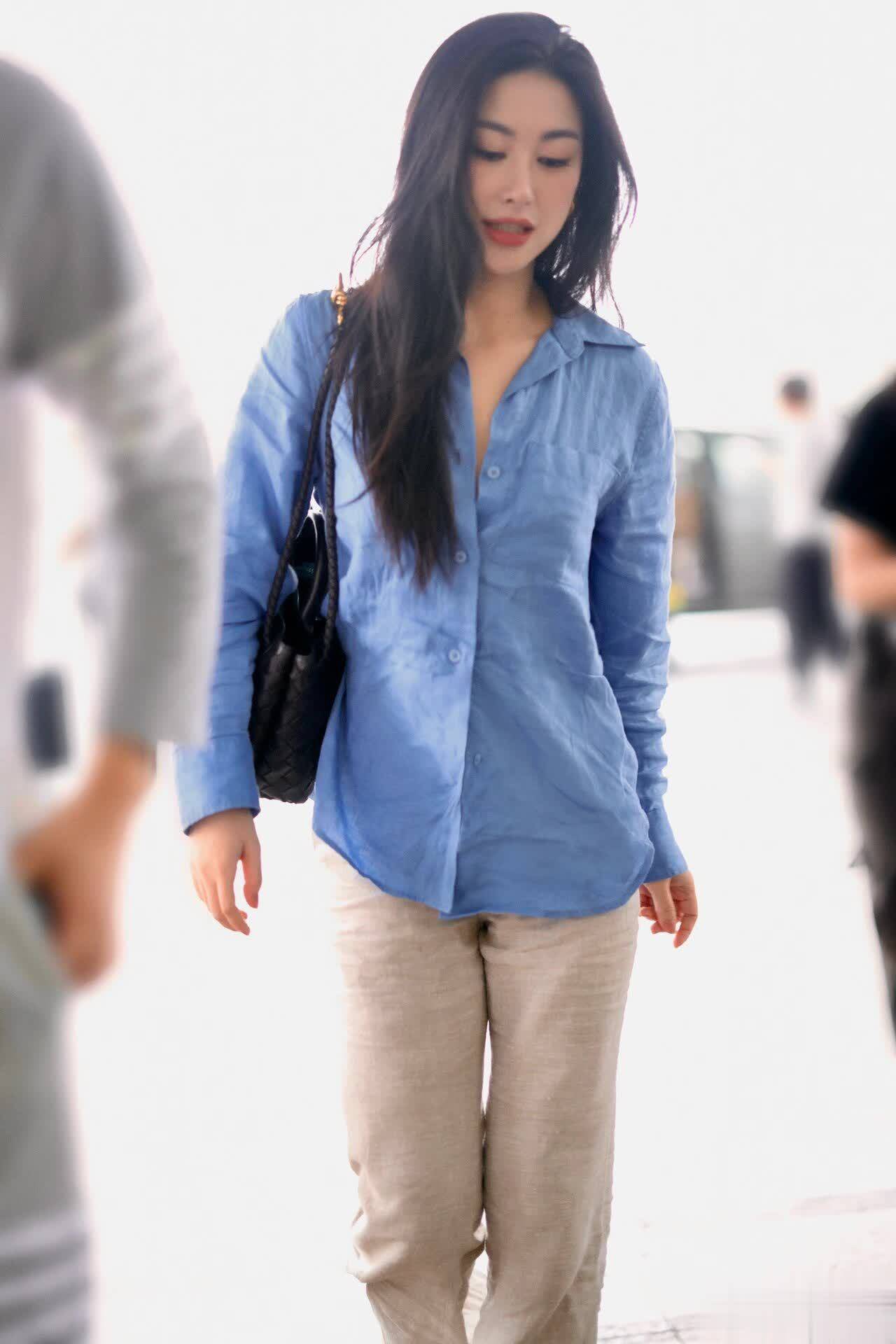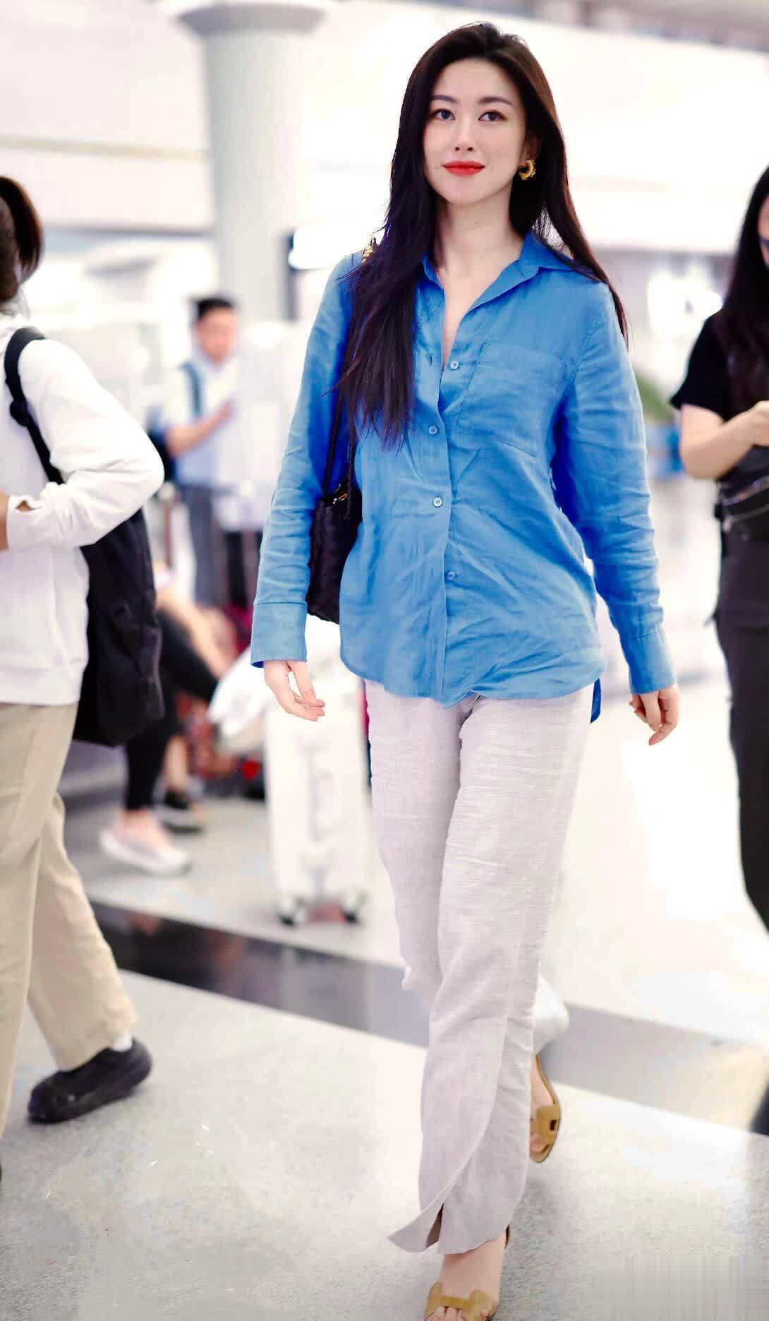 先夸夸朱珠自带的高级感:朱珠的穿搭向来高级,她的气质更是令人羡慕不已。这次她选了一件蓝色皱巴巴衬衫,搭配一条浅灰色阔腿裤,简约又时髦。